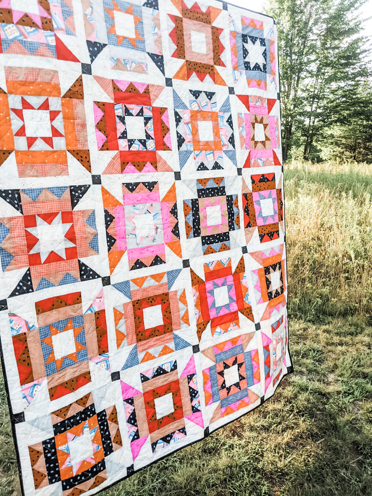 This gorgeous pattern is the NovaStar pattern by Then Came June. It was made with Ruby Star Society and Spoonflower fabrics.