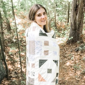 I was THRILLED when Nuria of Fabric Stork and Sarah of Sarah Made asked me to be a pattern tester for their new pattern. This collaboration created the Nestologie Quilt pattern that releases August 31st! Fabric Stork is releasing it for free when you sign up for her newsletter.