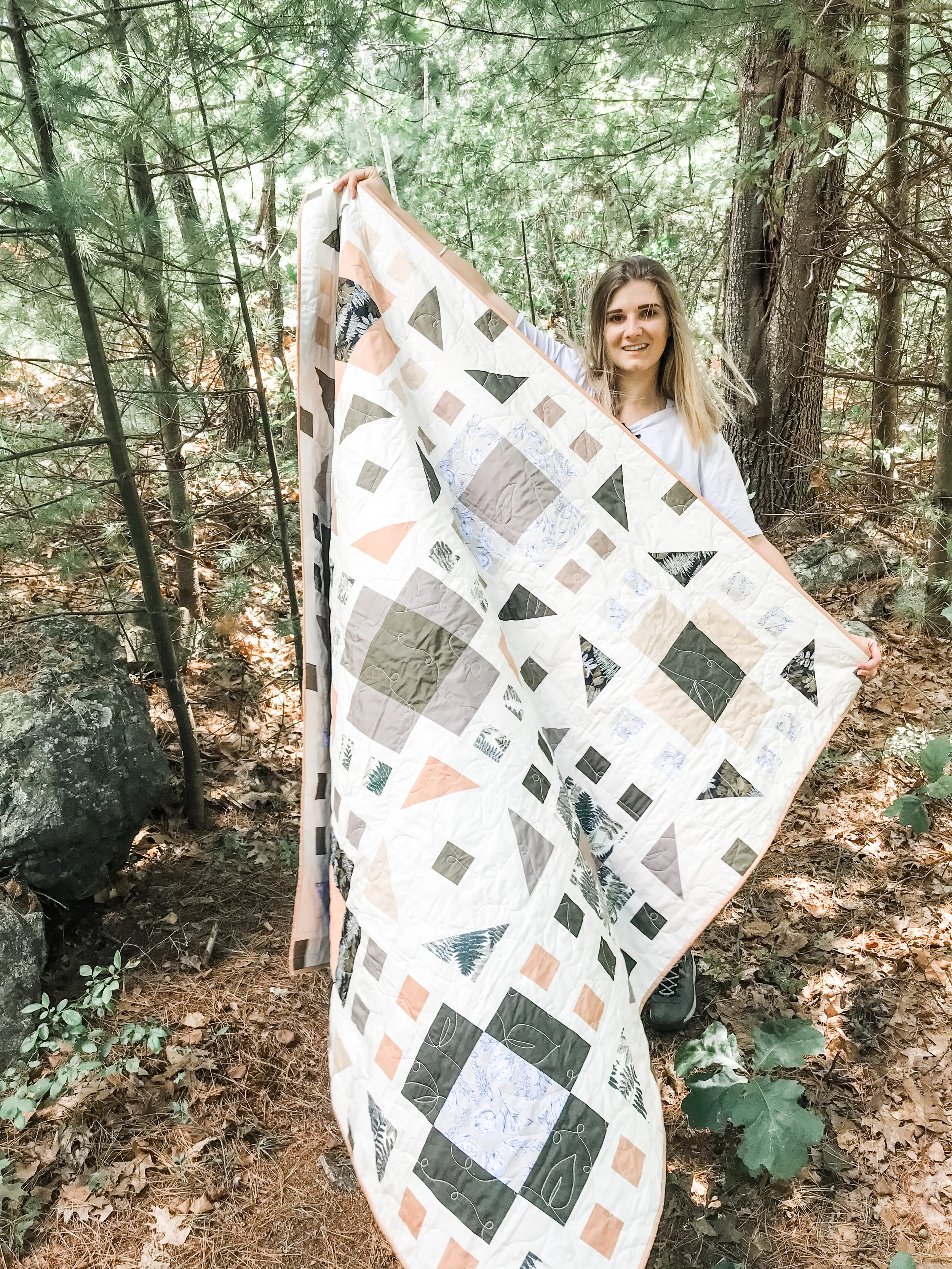 I had barely finished the first Nestologie quilt before I was planning another. This quilt made use of the Nature Walk bundle from Fabric Stork and the scrappy Nestologie Quilt pattern, again by Fabric Stork and Sarah Made.